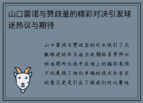山口雷诺与赞歧釜的精彩对决引发球迷热议与期待
