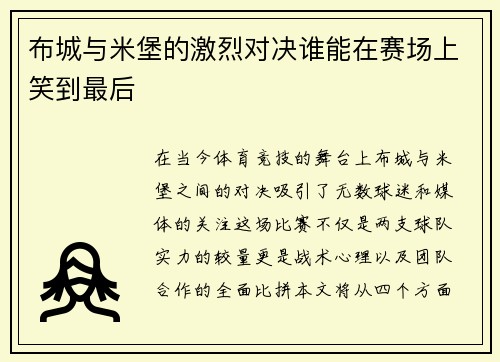 布城与米堡的激烈对决谁能在赛场上笑到最后